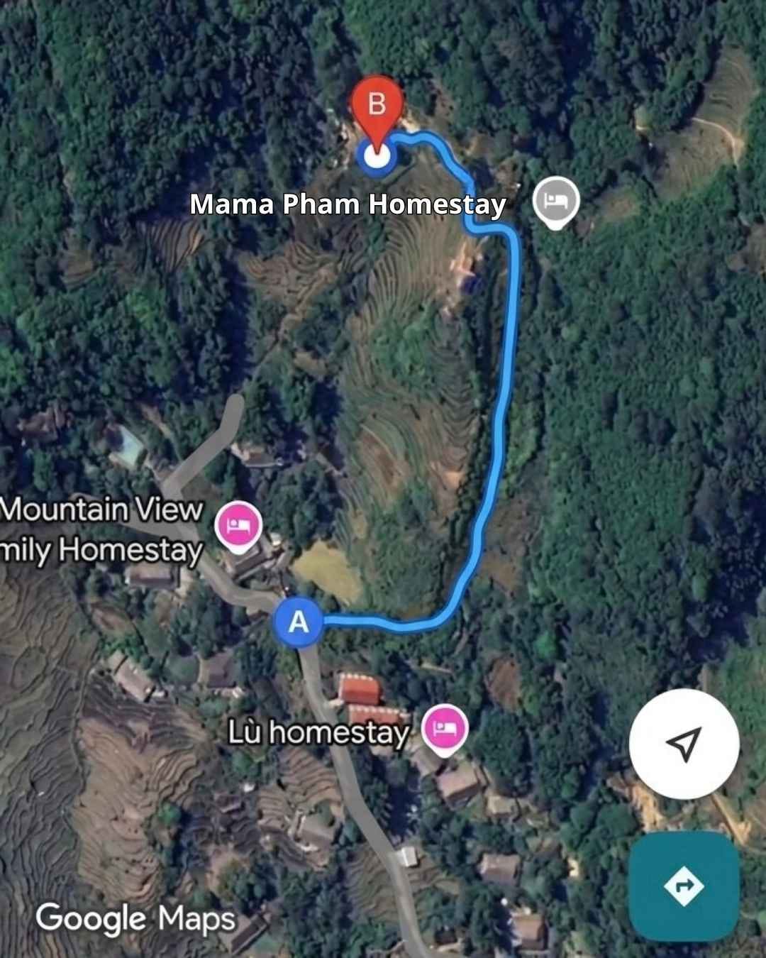 A simple step-by-step guide on how to get to Mama Pham Homestay from Sapa town. Directions for Grab motorbikes, cars, and scenic trekking routes.